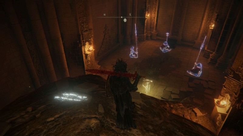 エリアのメインボスに近づくと、左側に3人のクリスタリアンがいる廊下に出くわします.剣を取れる場所を守っているので、ちょっと苦戦しそうです。基本的に、彼らのグループで走り、剣を手に取り、恩寵の地に戻ることができます。その場所で休むことで敵意を取り除き、厄介な戦いを避けることができます.