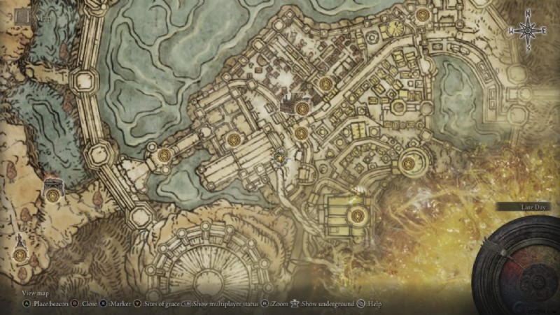 エルデン リングで暗号化された剣を入手するには、王都に向かいます アルトゥス高原で。 ここに向かう 首都の橋の上。
