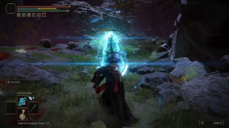 Azur の Glintstone Staff や Lusat Glintstone Staff のような最強の Glintstone Staff を使用してください。次に、Comet Azur と Terra Magica のコンボを使用します。