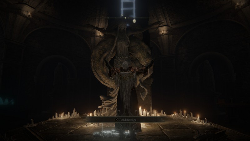 このはしごを上ると、もう 1 つの メモリー ストーン である宝物への明確な道があります。 、これらのタイプのタワーではかなり一般的です。なじみのない人にとっては、これにより、ソーサリー/呪文のユーザーが追加のスロットを利用できるようになり、呪文の武器を多様化しようとしている人にとって便利になります.ここで他に注目すべき点はありませんが、これは簡単に価値のある報酬です.まだジェスチャを取得していない場合、ジェスチャを取得するのはまったく別のタスクです