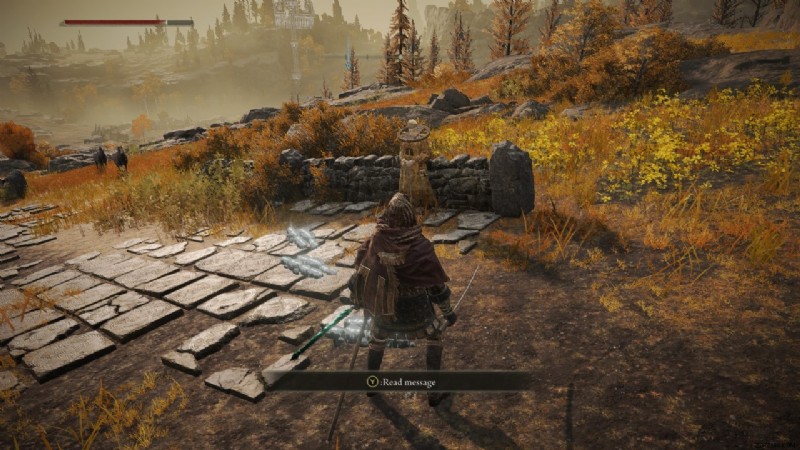 Leyndellに着くまで、クエストの次の部分は始まりません。 Corhyn と Goldmask の両方が都市に移動し、コロッセオ近くの崖の上で見つけることができます。どちらもなぞなぞで混乱しており、解決するにはあなたの助けが必要です。このなぞなぞの解決策は、実際には、Leyndell の像の前にある回帰メッセージの解決策です。このなぞなぞを解いたら、Corhyn と Goldmask に会った場所に戻って答えを返すことができます。