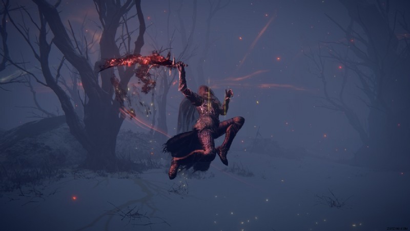 - ブラック ナイフ: 最後に、暗殺者の黒刃専用武器。この武器のアッシュ オブ ウォーは、敵の最大 HP を減少させると同時にダメージを与える発射体を発射します。ふさわしく、この武器は聖なる英雄の墓の前に立つブラック ナイフの暗殺者を倒すことで入手できます。 アルトゥス高原にて。使用するには、筋力 8、器用さ 12、信仰力 18 が必要です。