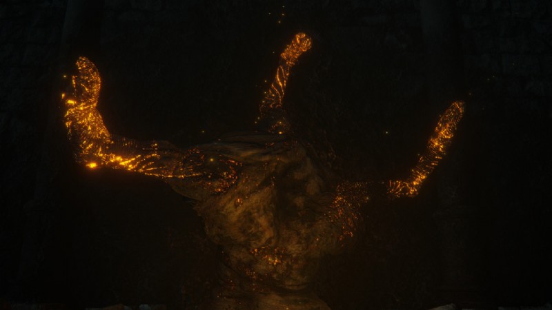 見捨てられた大聖堂にて モーグと戦う恵みの場所、宝箱を通り過ぎる 後ろの祭壇の上に立つ .これにより、熱狂的な炎に苦しめられた人々の死体が散らばっているカタコンベへの秘密の通路が開かれます。中央エリアのプラットフォームを慎重に落とします (途中で敵の攻撃によって壊れる可能性があるテント内のアイテムをつかみます)。一番下に到達すると、床が崩壊し、Frenzied Flame Proscriptionに落ちます。強い> .恵みの場所を活性化してください。