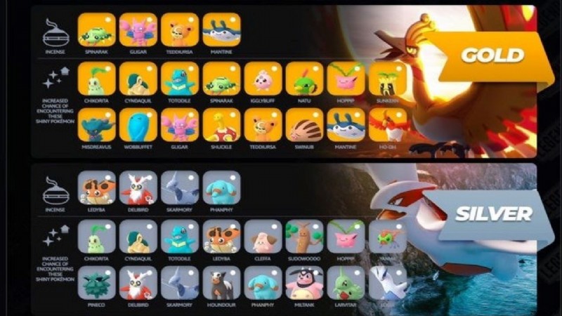 反対に、ポケモン ゴー ツアー:ジョウト シルバー より高いキャッチチャンスを持つ独自の特定のポケモンをフィーチャーします。イベント期間中、これらのポケモンはおこうから、または野生で捕まえることができます。シルバーでより多く出現するポケモンは次のとおりです: