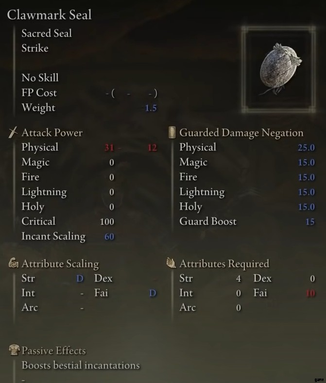 Clawmark Sealは、特に低い要件を考慮して、どれだけ早く入手できるかにより、おそらく最高のSacred Sealの1つです.多くのプレイヤーは最初のプレイスルーで強さに重点を置いた構築を行う傾向があるため、大多数のプレイヤーはこのシールの恩恵を受けることができます.このリストで説明した他のオプションがありますが、ゲームの初期から後半にかけてClawmark Sealを使い続けることができ、そのスケーリングから大きな恩恵を受けることができます.