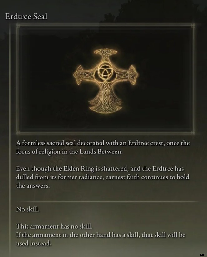 表面的には、エルドツリー シールはパッシブ バフがないため奇妙に見えるかもしれませんが、おそらく最高のセイクリッド シールの 1 つです。厳粛な鍛冶石を使用して封印を +10 にアップグレードした場合、あらゆる呪文に対して最高のダメージ出力を提供することで、ブーストの不足を補います。したがって、プレーヤーがさまざまな呪文を使用しようとしている場合は、Erdtree Seal が最適なオプションです。