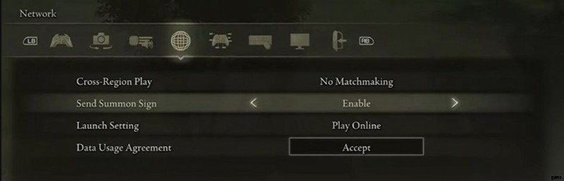 これは、一部のプレーヤーが効果的であると報告しているため、効果的な別の解決策です.クロスリージョンプレイをオンにすると、異なるリージョンのプレイヤーとプレイできるようになります。この設定をオンにするには、メニューを開いてネットワークに移動します .あちらでは、最初のオプションは クロスリージョン プレイ です。 . マッチメイキングなしに設定されます デフォルトで。