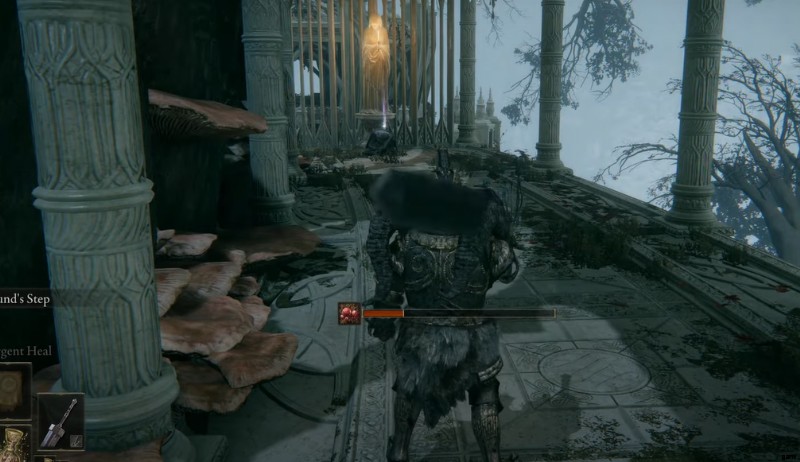 サイト オブ グレースの北西の入り口から部屋を出て、はしごに向かいます。はしごを登り、エリア内のすべての敵を倒します。登った側に目を向けると、生け贄と乙女の像が見えます。飛び越えて、ミスビゴットを殺し、パール ドレイク タリスマン +2 を手に入れましょう。