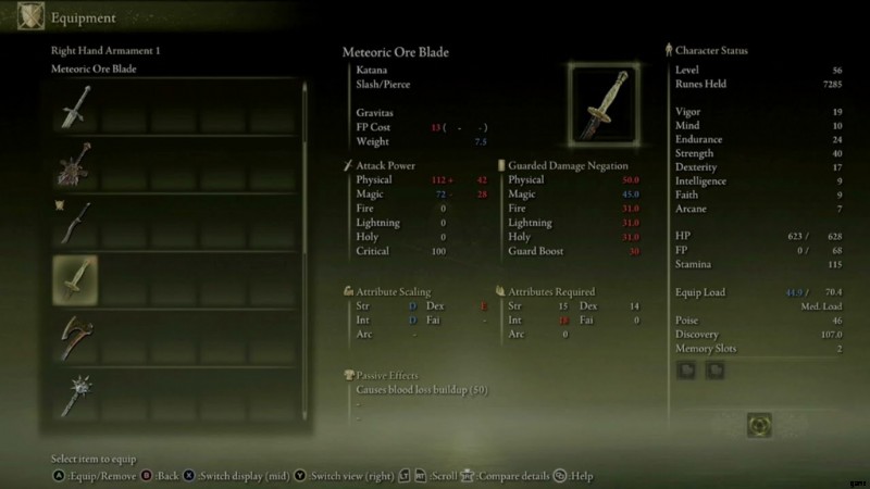Meteoric Orc Blade は Elden Ring の優れた Katana で、主に強度、器用さ、および知性でスケーリングします。これは、Elden Ring のプレイヤーにとって確実な選択です。戦争の灰を注入することはできませんが、グラビタス 武器スキルは優れた選択であり、武器はゲーム全体を持続させるのに十分です.