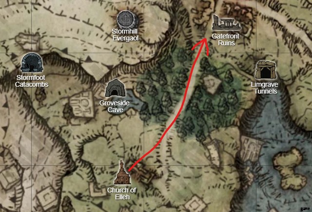 ストームヴィール城にたどり着くには、ゲートフロント廃墟キャンプの近くにある巨大なゲートに入り、先に進みます。