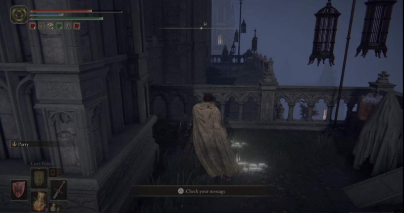 別のキーを取得するには、ラヤ ルカリア アカデミーに戻る必要があります。 Debate Parlor Site of Grace からゲートを出て、右側の階段を上ります。すべての敵を倒し、左を向いて手すりを飛び越えます。目の前にある階段を上ります。その上で、もう一度左に曲がり、別の手すりを飛び越えて屋上に着陸する必要があります。