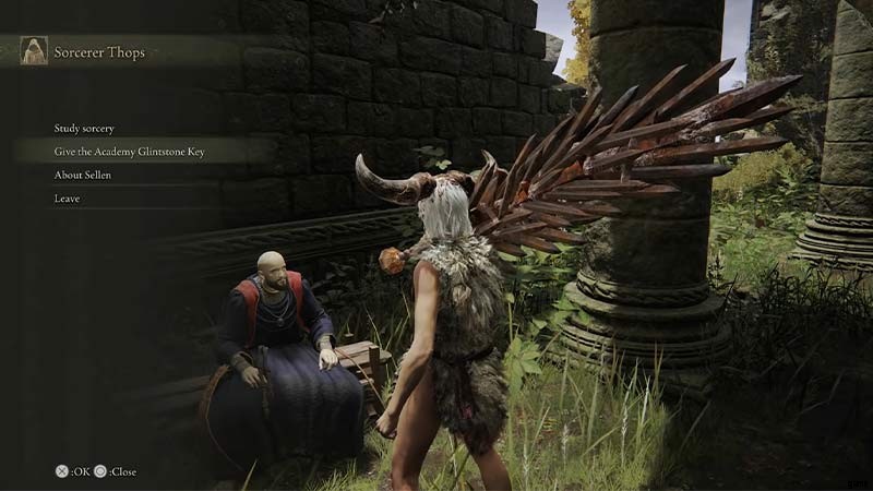 エルディション ジェスチャーは、Thops the Seconds Academy Glintstone Key を渡すことで入手できます。 Thops は Church of Irith で見つけることができ、Liurnia of Lakes に向かう途中で彼に遭遇します。アカデミーのグリントストーン キーを彼に渡しても、ラヤ ルカリア アカデミーに入る唯一の方法だと彼は言うので、彼はキーを受け取りません。