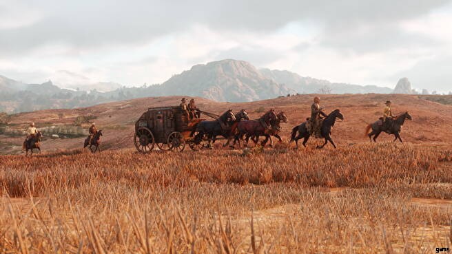 プレイ可能な主人公のアーサー・モーガンは、実際にはダッチのギャングのメンバーであり、人々が以前に推測していたように、ジョン・マーストンとしてプレイすることはありません.予告編ではギャングの話が非常に強調されており、列車強盗と従来の弓矢を使った狩猟が行われているのを見ることができます.