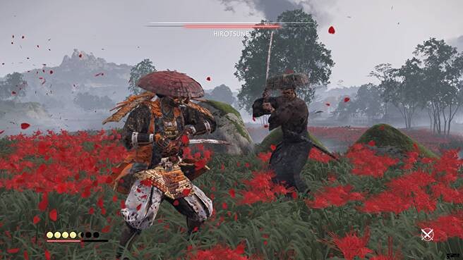 ヒロツネは野獣のように戦い、大きくて激しい攻撃と突進の動きを繰り出し、ほとんどの場合、少なくとももう 1 つのスイングが続きます。彼の反撃の窓ははるかに小さいですが、着地したときのよろめきダメージははるかに大きく、ガードがダウンしているときに強力なヘブンリー ストライク攻撃のチャンスを与える可能性があります。彼が防御不能な攻撃を行うたびに、直接後方にかわします。注意してください。広常は、鎧を着ていても、1 回の攻撃でヘルス バーの半分のダメージを与えることができます。