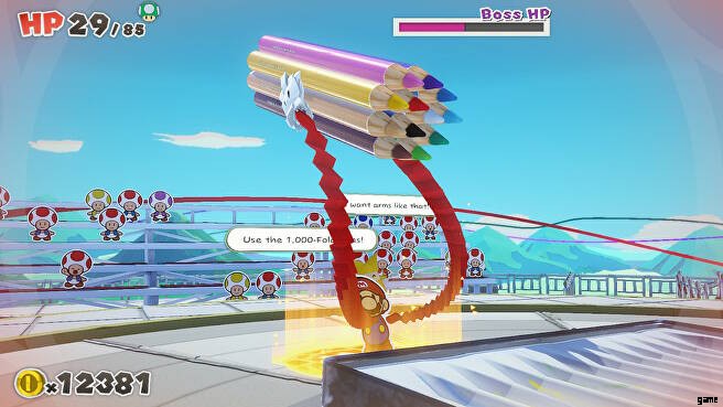 ペーパーマリオ オリガミキングで色鉛筆のボス戦に勝つ方法