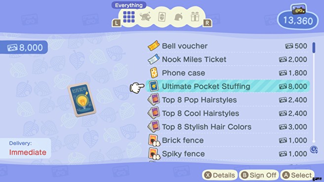 Nook's Cranny (詳細はこちら) のロックを解除すると、Nook Stop マシンからベル バウチャーを購入できるようになります。 500 マイルで、販売時に 3,000 ベルがもらえるバウチャーを購入できます。これは、ヌーク マイルをベルに変換する良い方法です。