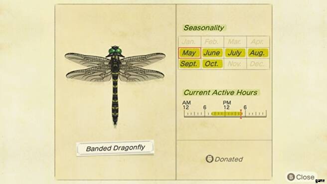 縞模様のトンボは、適切な時期と天候でどうぶつの森ニューホライズンで捕まえることができ、それらを先取りする方法を考え出すことができます.縞模様のトンボを捕まえたい場合は、次のアドバイスが役に立ちます: