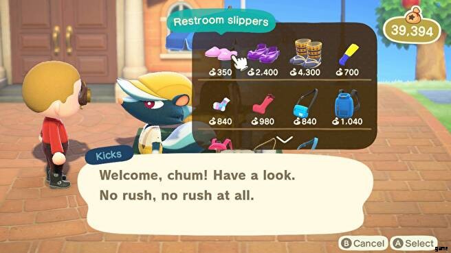 キックスは、名前からお察しのとおり、靴と靴下の両方の靴を主に扱っています。彼が島に現れるたびに、彼が販売するランダムな選択があり、通常は3足の異なる靴と同じ数の靴下が、どれだけ希少か豪華に見えるかによって価格が異なります.彼はバッグ、サッチェル、バックパックも販売しています。実際、商人からこれらのものを購入するには、Kicks が唯一の方法です。ただし、靴下と靴が必要な場合は、エイブルシスターズショップから購入できます.まだ持っていない場合は、ここで入手方法を確認できます。
