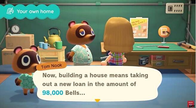 テントから家に移動するには、かなりの費用がかかります。 Tom Nook が提供するローンは 98,000 ベルです。これは明らかに大量の Bell ですが、追加のストレージ オプションを利用するには余分なスペースを確保するだけの価値があるようです.