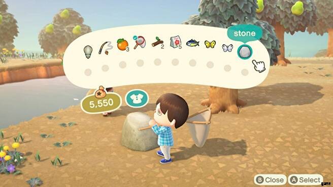 Animal Crossing New Horizons で岩を壊すには、石の斧と果物の 2 つが必要です。果物はあなたの島で育つものなら何でも構いません。これら 2 つのアイテムを入手したら、次の手順を実行します。
