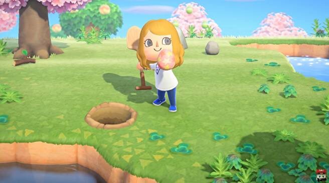 バニーデーの主なタスクは、イースターエッグを集めることです。これらはいくつかの方法で見つけることができます。まずはそれらを掘り起こすことです。地面で X を探すことでそれらを見つけることができます (これは化石が見つかる方法と似ています。詳しくはこちらをご覧ください)。イースターエッグを入手するもう 1 つの方法は、釣りをすることです。このページで見ることができる任天堂がこのテーマでリリースしたビデオの外観から、魚を水から引き上げると実際にイースターエッグになる魚もいます.これは、タイヤやブリキ缶などのゴミがゲームでどのように機能するかに似ています。