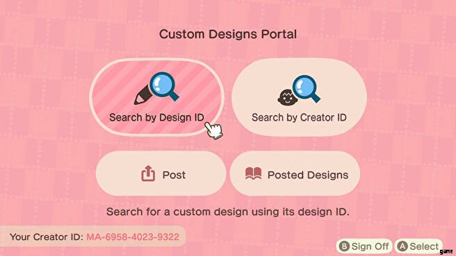 どうぶつの森ニューホライズンでデザインを検索するには、誰かの作成者コードを検索してすべての投稿を表示するか、デザイン ID を検索して特定のアイテムを探すことができます。検索する前にこの情報が必要になります。
