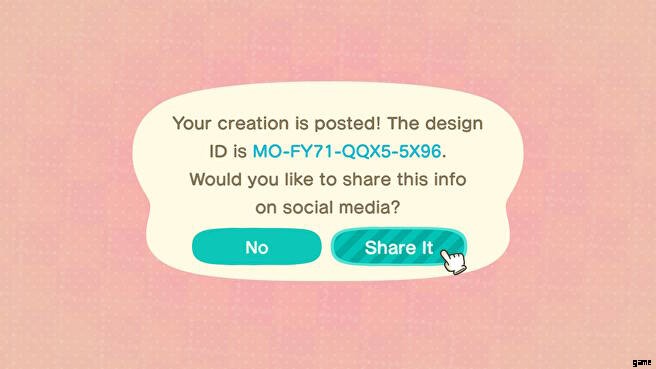 Animal Crossing New Horizons で作成したものを共有したい場合は、コードを生成する必要があります。これを行うには、エイブル シスターズ ショップに向かい (まだロックを解除していない場合は、ここでロックを解除します)、ショップの向こう側にあるピンク色のターミナルを操作します。ここでは、コードを生成するデザインをアップロードできます。そのコードを共有した人は誰でも、あなたのデザインをダウンロードできます。