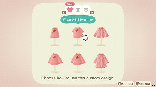 Pro アップグレードを購入した携帯電話で Custom Designs アプリにアクセスすると、新しいオプションに気付くでしょう。 Pro Designs メニューに移動すると、新しいオプションが表示されます。トップス、ドレス、帽子からお選びいただけます。カスタムデザインはここで適用できます。 Pro Design オプションを使用すると、デザインをより詳細に制御できます。簡単に言えば、描画できるピクセルが増え、より複雑なデザインが可能になります。