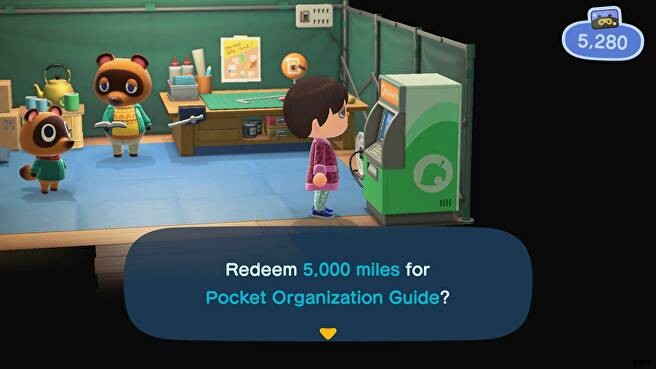 どうぶつの森ニューホライズンズで持ち運べるアイテムの数を増やすには、ポケット整理ガイドを購入する必要があります. 5000ヌークマイルがかかります。購入すると、在庫サイズが大きくなり、より多くのアイテムを持ち運べるようになります。