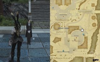 それらを入手したら、Old Sharlayan の NPC「身なりの良い従者」に話しかけて、クエスト「Of Mothers and Merchants」を開始できます。以下にその場所を示します。